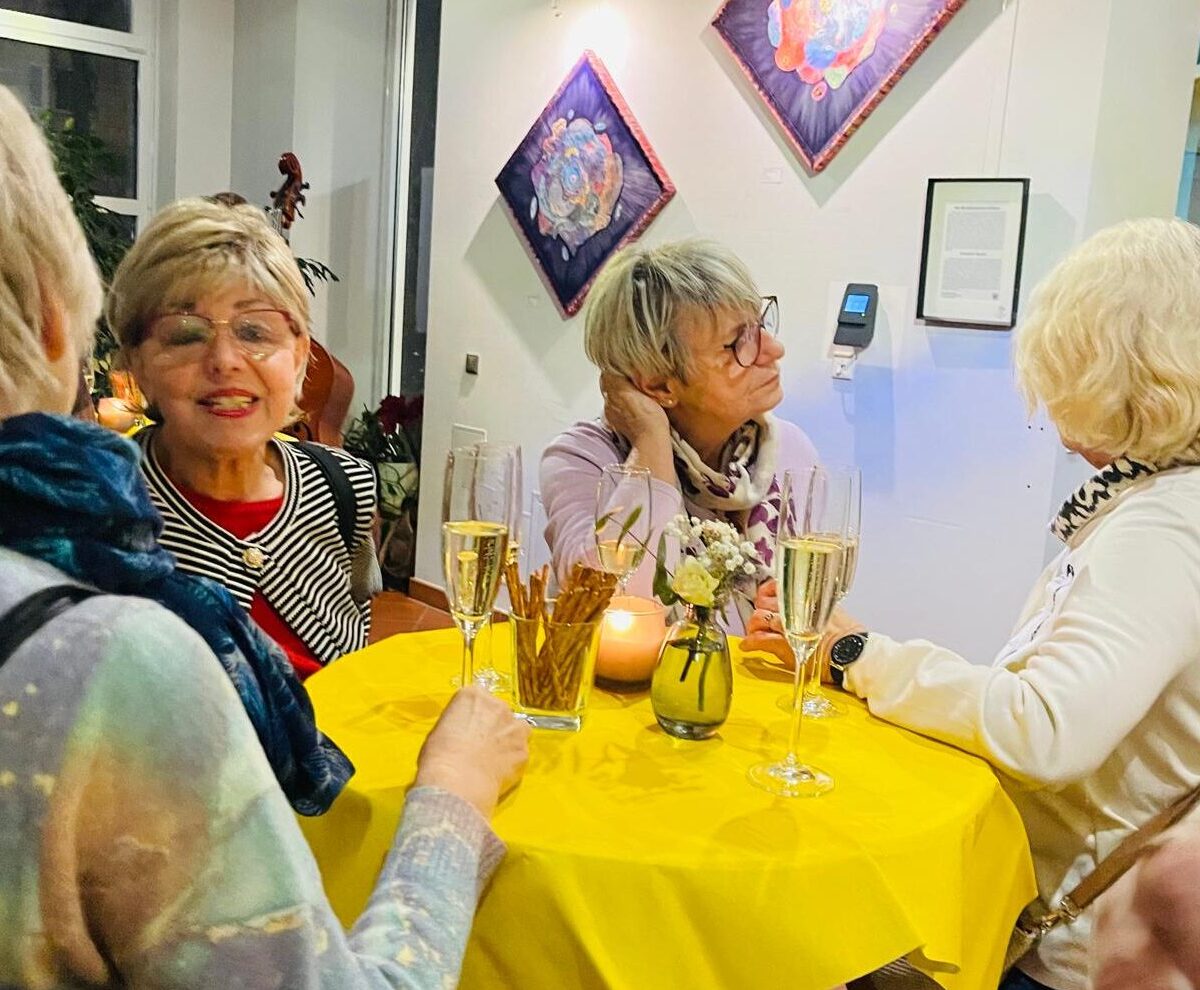 Schnell waren die liebevoll vorbereiteten Häppchen und Getränke verputzt, während überall angeregte Gespräche entstanden. Ein besonderer Moment des Abends war zweifellos Vanessa Neubers tiefgründiger Vortrag eines Gedichtes, der das Publikum berührte und einen sehr persönlichen Einblick in ihre künstlerische Welt gab.