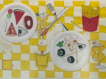 Auch die jungen Künstlerinnen und Künstler griffen diese Idee auf. In ihren Collagen zeigen sie verschiedenste Tischsituationen, Speisen und Getränke. Manche Werke erinnern an das Lieblingsessen von der Oma, andere an ein besonderes Geburtstagsessen, an kulinarische Entdeckungen im Urlaub oder an gemütliche Abende mit Pizza vor dem Fernseher.